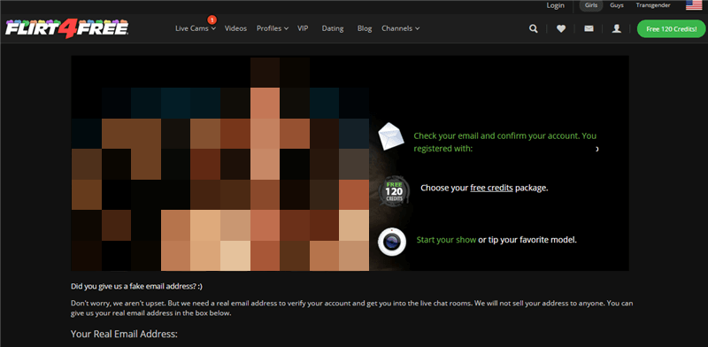 以下ではFlirt4Freeの無料会員登録の手順と、120クレジットを無料でもらう手順を解説します。